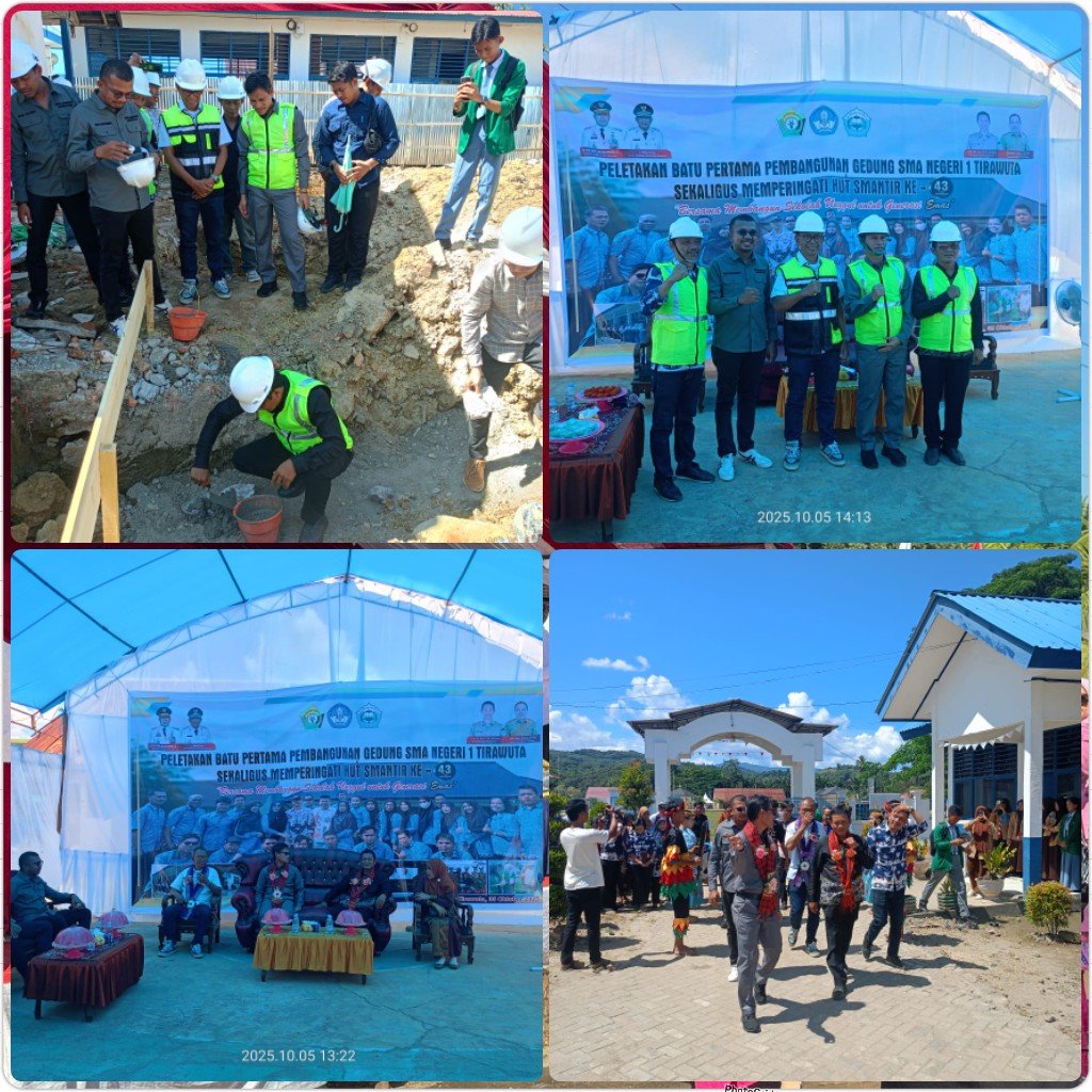 Hal ini ditandai dengan peletakan batu pertama pembangunan dua gedung SMAN 1Tirawuta, pada Minggu (5/10/2025), sekaligus memperingati HUT SMAN 1 Tirawuta ke-43 Tahun 2025, oleh Asisten Tiga Seda Koltim Irwan Kara, S.Sos., MM mewakili Plt Bupati Koltim.