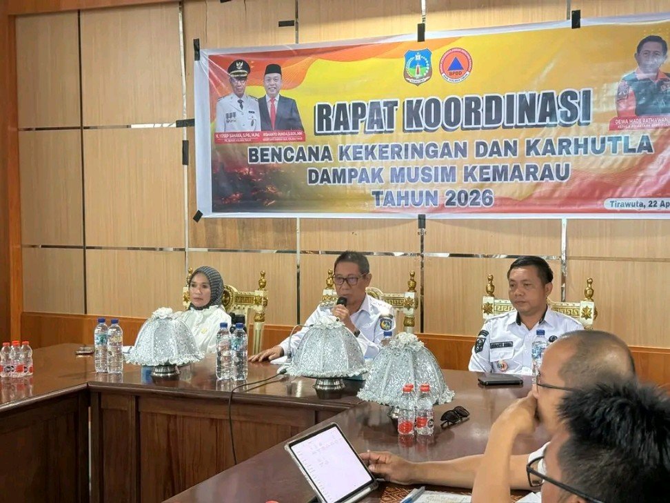 KOLTIM, Aspirasisultra.com – Pemerintah Daerah (Pemda) Kabupaten Kolaka Timur (Koltim) melalui Badan Penanggulangan Bencana Daerah (BPBD) Koltim menggelar Rapat Koordinasi (Rakor) dalam rangka antisipasi bencana kekeringan serta Kebakaran Hutan dan Lahan (Karhutla) akibat musim kemarau tahun 2026. Kegiatan ini berlangsung di Aula Rapat Lantai II Kantor Bupati Kolaka Timur, Desa Lalingato, KecamatanTirawuta, Rabu (22/04/2026).