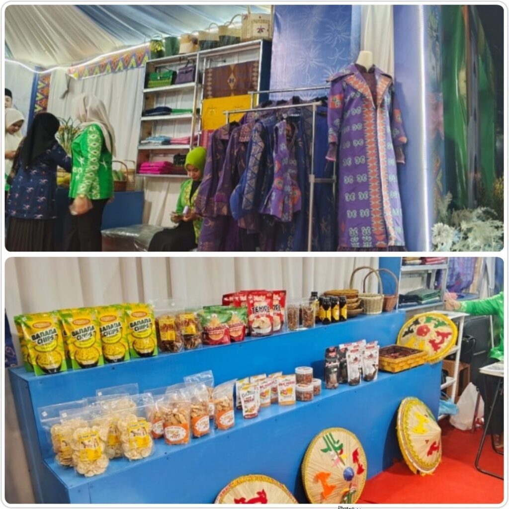 Tak hanya kuliner, stand Kolaka Timur juga menampilkan produk kerajinan tangan seperti tas anyaman, bakul, serta aksesori berbahan alami yang mencerminkan keterampilan masyarakat lokal. Di sisi lain, terdapat koleksi kain dan busana khas daerah yang dipajang dengan penataan yang elegan, mulai dari kain lipat hingga pakaian siap pakai dengan motif etnik yang khas.